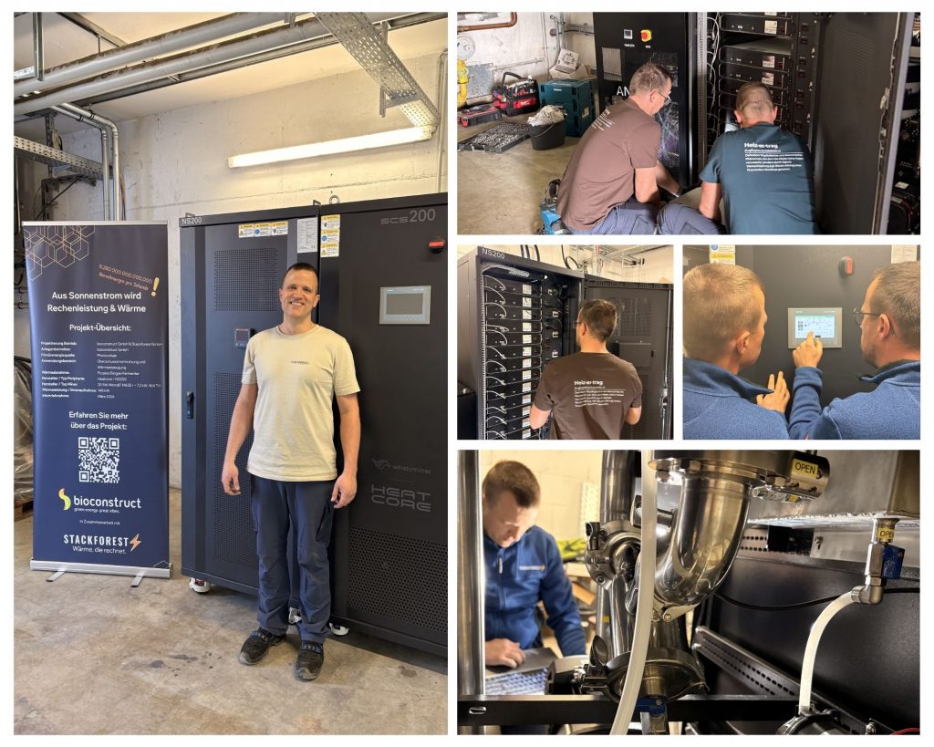 Mit unserem Pilotprojekt bei Bioconstruct zeigt Stackforest erstmals in der Praxis, wie Bitcoin-Mining als flexibler Stromabnehmer und gleichzeitig als Wärmequelle eingesetzt werden kann. Überschüssige Solarenergie wird genutzt, die entstehende Abwärme heizt eine Biogasanlage – ein neuer Ansatz für effizientere erneuerbare Energieprojekte.